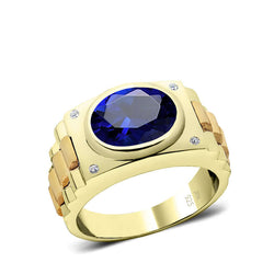 - Sterling Silver Blue Sapphire Ring for Man Gold Plated Band with Natural Diamonds 25th Anniversary Gift