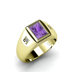Sold out - Man Ring with GENUINE Diamonds and Amethyst in Yellow Gold Plated Solid Silver Aquarius Gift