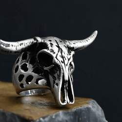 - Solid Sterling Silver Bull Skull Large Heavy Ring(2)