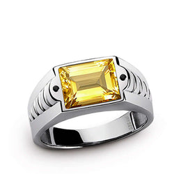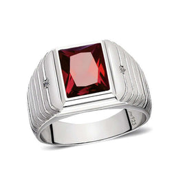 Sold out - Men's 925 Silver Ring with 4 Genuine Diamonds & Square Gemstone(9)