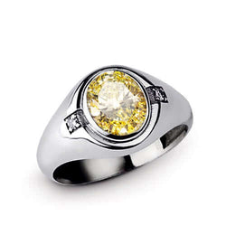 Sold out - Natural Diamond Ring for Men 925K Silver and Oval Gemstone(10)