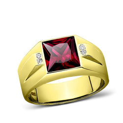 Sold out - Red Stone Ring for Man with 2 DIAMONDS 0.06ctw in Yellow Gold-Plated Silver Ruby Birthstone gift(2)