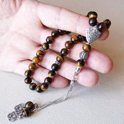 Sold out - Tiger's Eye Personalized Tasbih 925 SILVER Natural Brown Gemstone Rosary Muslim Misbaha(6)