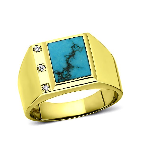 At its center, you'll find a captivating Turquoise gemstone, expertly cut into a sleek rectangular shape, measuring 0.8CM x 1.0CM. The vibrant color of turquoise brings a bold splash to the piece, making it an eye-catching element in your collection. It is securely encased in a bezel setting to provide durability and emphasis on the stone's natural beauty.