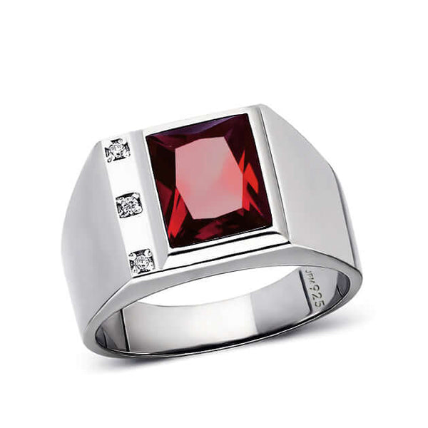 This solid sterling silver men's gemstone ring is a true masterpiece of elegance and craftsmanship. The centerpiece features a 3.40 ct faceted rectangle gemstone measuring 10x8 mm (0.4"x0.3") held securely in a bezel setting. This distinct design enhances the stone's natural beauty, ensuring it catches every eye.