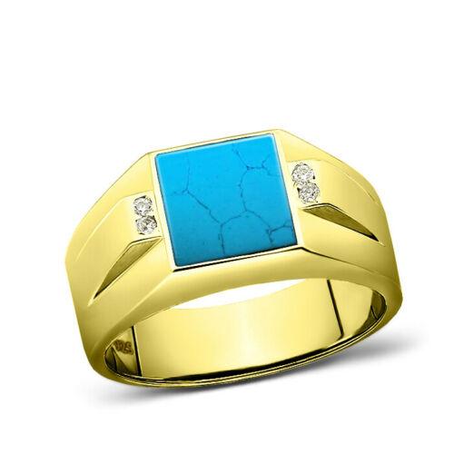 This Turquoise Men's Ring features four stunning diamond accents, making it an eye-catching piece of jewelry. Crafted with 18k gold plating over real 925 sterling silver, it ensures durability and sophistication for the modern man. The combination of vibrant turquoise and sparkling diamonds creates a balance between color and shine, perfect for any occasion.