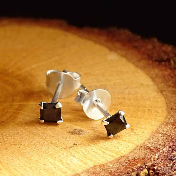 925k Sterling Silver Mens Stud Earrings with Black Cubic Zirconia