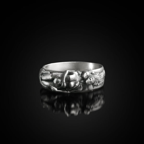 Made from 925 sterling silver with a smooth matte finish, this sculptural ring beautifully depicts two lovers locked in a gentle embrace. A thoughtful gift for couples, symbolizing connection and love.