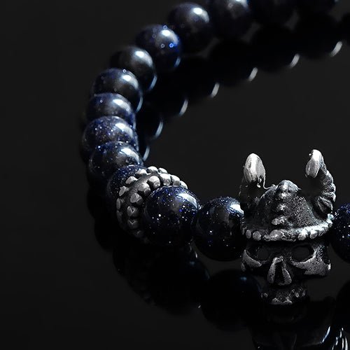 The 6 mm Blue Sandstone, known as Blue Goldstone, enriches this piece with more than just aesthetics. Believed to be a stone of ambition, it fosters energy, courage, and positivity. Its gentle properties aim to uplift mood, enhance drive, and boost confidence in the wearer.