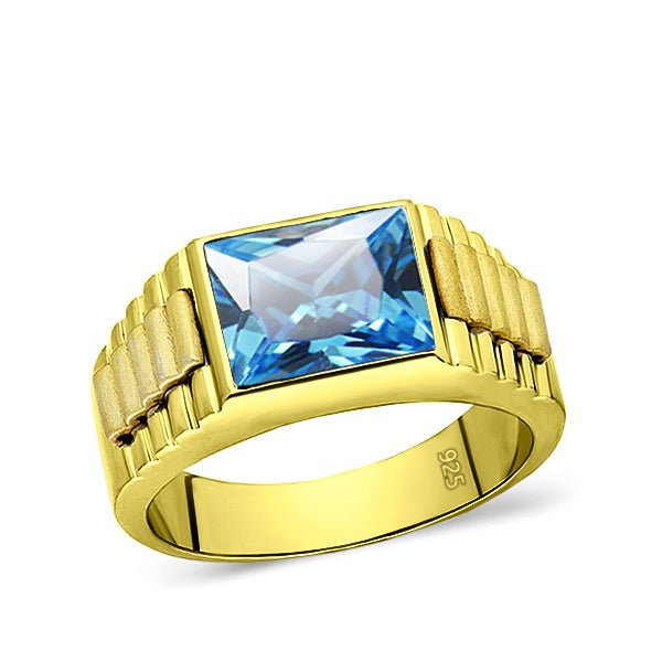 At its heart lies a stunning blue topaz, cut into an elegant rectangular shape measuring 8mm by 10mm. This vibrant gemstone exudes clarity and brilliance, becoming a focal point that effortlessly catches light and draws admiration. A true expression of refined taste.