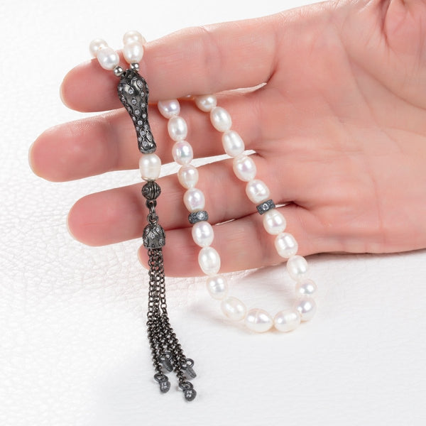 Discover the soothing and elegant design of the White Pearl Muslim Rosary, a timeless piece crafted to enrich your spiritual practices. Featuring 8 mm (0.3") natural pearls, each bead reflects purity and grace. Perfectly suited for thoughtful prayer sessions, the rosary is a treasured accessory for personal meditation.