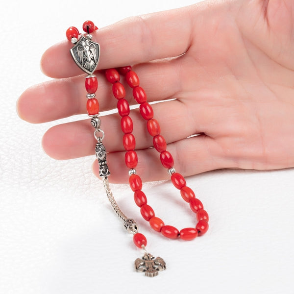 Each bead on this prayer rosary is crafted from natural red coral, adding a vibrant splash of color to your devotional practices. With a standard bead size of 8 mm (0.3"), it provides comfort and ease during prayer recitations.